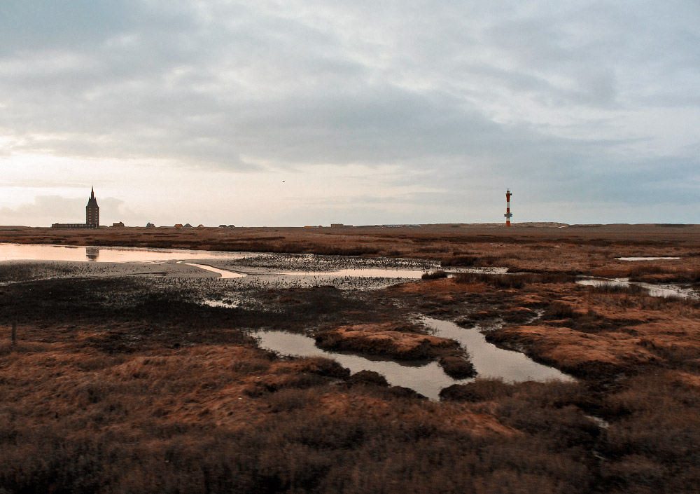 Während der Zugfahrt vom Westanleger zum Dorfbahnhof kann man als anreisender Gast schon die rauhe Schönheit der Wangerooger Salzwiesenlandschaft bewundern.