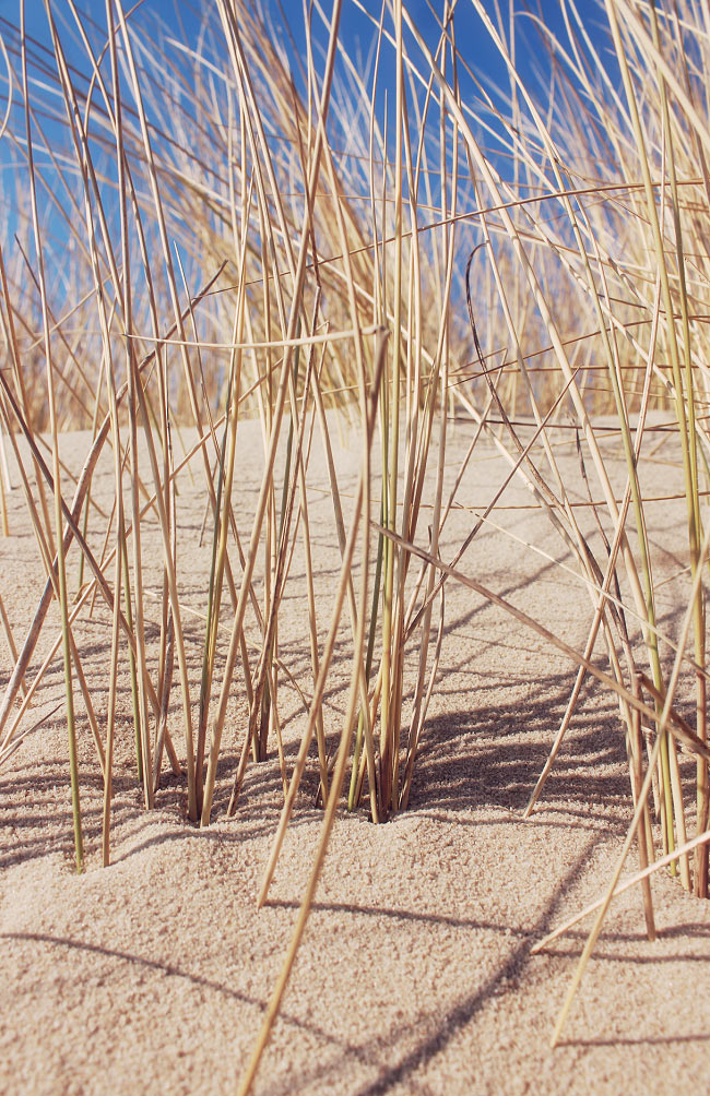 ‹ Das Dünengras, das hier in den Ostdünen wächst, ist noch nicht besonders dicht. Solch eine junge Düne nennt man »Weißdüne«, der Name rührt von den zahlreichen weißen Sandflecken zwischen dem Bewuchs her.