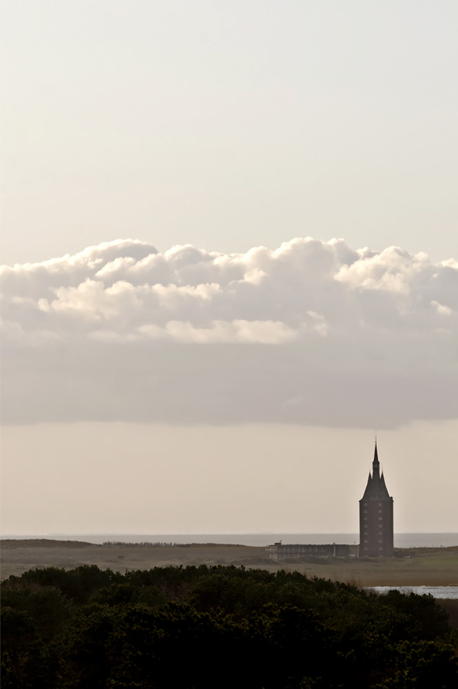 ‹ Der Westturm aus der Ferne betrachtet. Es scheint, als würde er von unten her die Wolkendecke »anpieksen«.