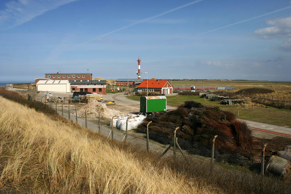 Landeinwärts geblickt, sehen wir den Schirrhof (Bauhof) des Wasser- und Schiffahrtsamtes Wilhelmshaven, Außenstelle Wangerooge.