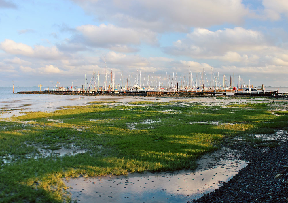 Die Bahn ist nach knapp 15 Minuten Wartezeit endlich abgefahren, hier ein Blick zurück zum Yachthafen am Westanleger.