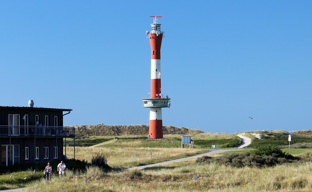 Dieses Foto zeigt den »Leuchtturm Wangerooge«, der ab 1966 im Westen der Insel erbaut wurde. 1969 wurde der Leuchtturm im Dorf außer Betrieb genommen, seitdem verrichtet der Neue Leuchtturm zuverlässig seinen Dienst.