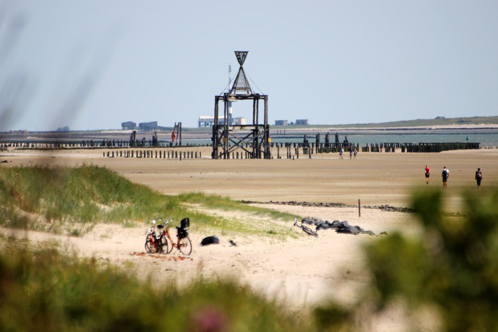 2012 gab es sie noch, die Ostbake. Hier ein Blick von den Ostdünen zur Stundenglasbake. Die Nachbarinsel Minsener Oog wirkt auf dieser Aufnahme äußerst nah, doch ganz so schmal ist die »Blaue Balje« dann doch nicht.