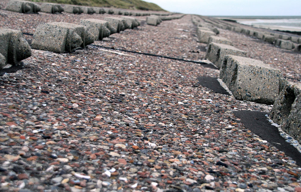 Das flache Deckwerk wird von der »Saline« bis zum Neuen Leuchtturm »Längswerk« genannt. Bei Sturmfluten wird es regelmäßig überspült, so daß das Wasser direkt gegen die Dünen brandet.