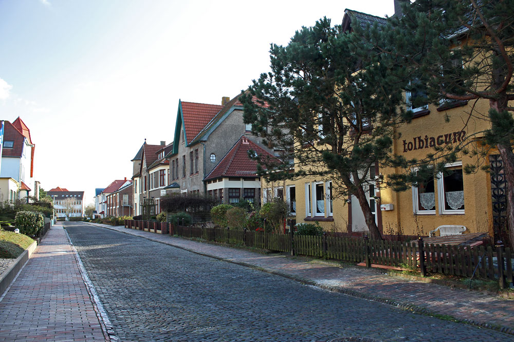Anfang November war nicht mehr besonders viel auf Wangerooge los, die »Elisabeth-Anna-Straße« macht hier keine Ausnahme. Das Foto entstand nur einen Tag vor Beginn der Abrißarbeiten am »Haus Tolbiacum« (ganz rechts im Bild). Bereits Ende des Monats ist nur noch ein Schutthaufen von der ehemaligen Pension übrig.