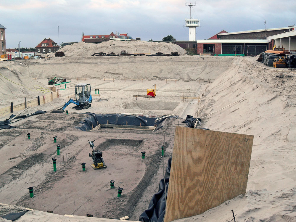 Ein Blick von Osten auf die Baugrube, die für den Bau des neuen Aparthotels »Anna Düne« ausgehoben wurde.