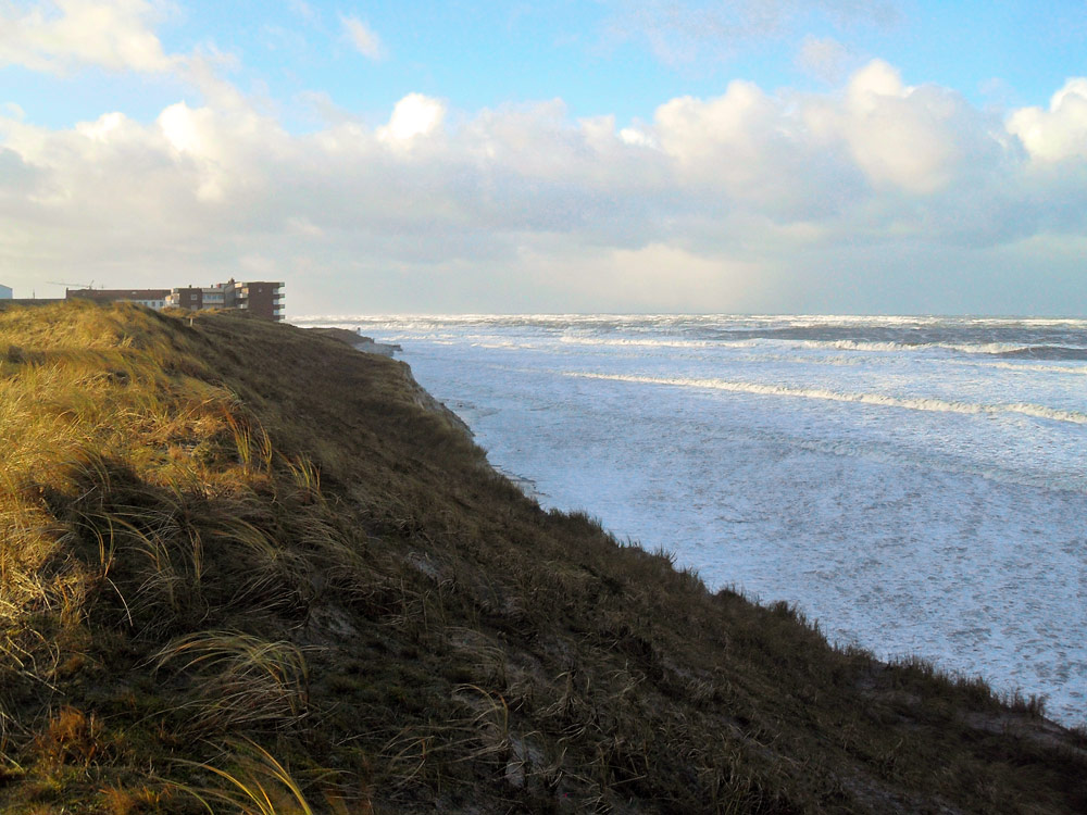 Ein gemütlicher Strandspaziergang ist an diesem Tag nicht möglich, das Wasser reicht bis an den Dünenfuß heran. Schuld ist das Orkantief »Xaver«, das im Dezember 2013 wütete.