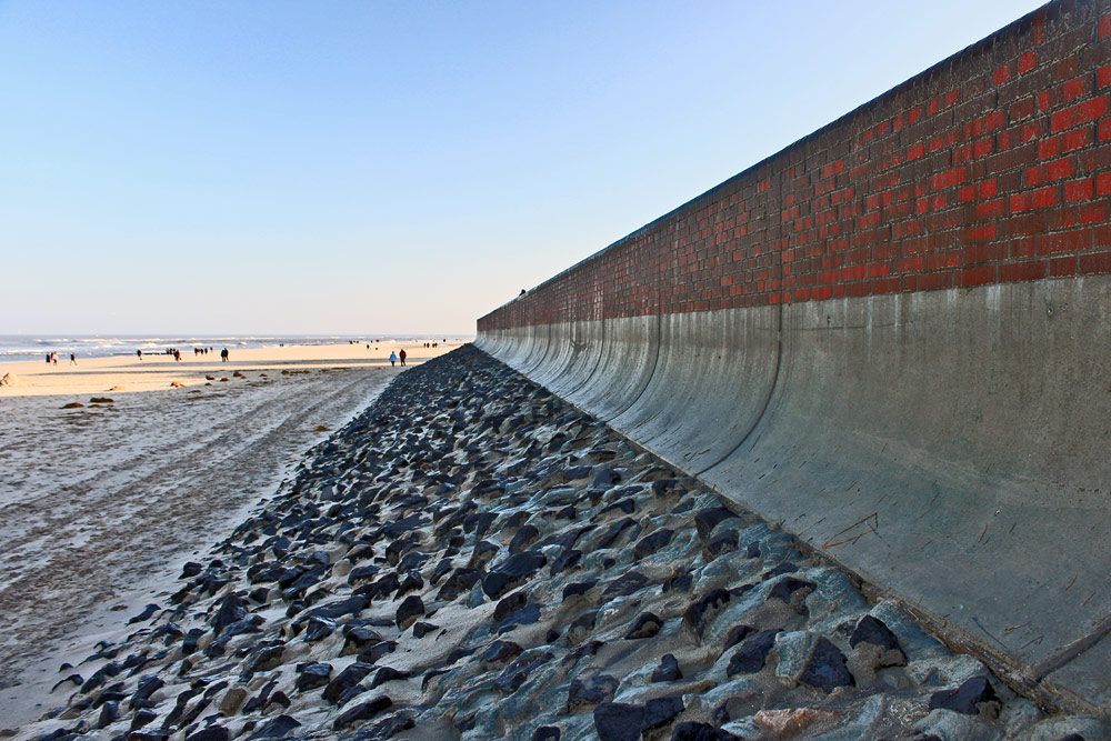 Warum die Strandmauer heißt, wie sie heißt, ist im Sommer bei hohem Strandniveau nicht gerade offensichtlich. Ganz im Gegensatz zum Zustand, der zum Jahreswechsel 2013/'14 herrschte, hier ist die Mauer deutlich sichtbar.