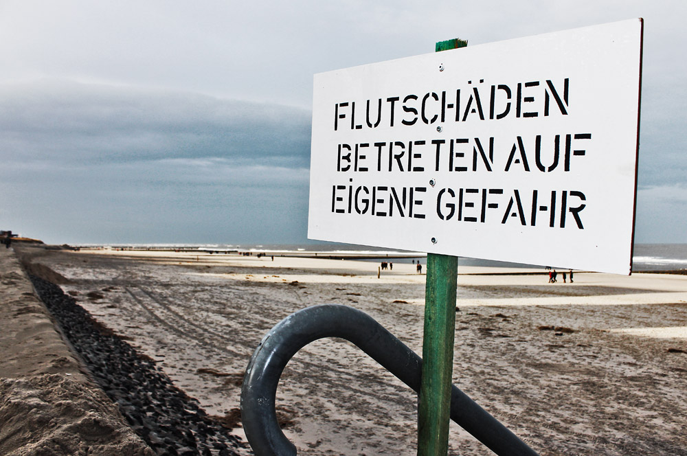 An vielen Stellen an der Strandpromenade und auf der Strandmauer warnen Schilder vor den Flutschäden bzw. der Abbruchkante. Wenn man aber ganz normal die Treppe benutzt, kann fast gar nichts passieren.