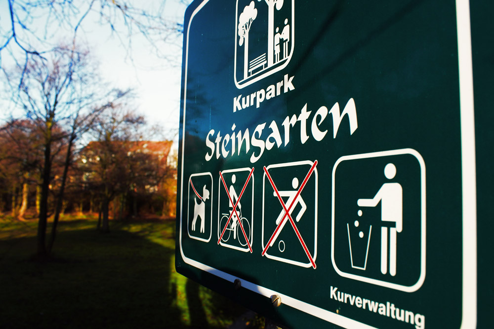 Bis vor kurzer Zeit war an den Zugängen sämtlicher Parkanlagen der Insel lediglich die Bezeichnung »Kurpark« auf den Schildern zu finden. Dies ist nun anders, jetzt werden die jeweiligen Parks auch beim Namen genannt. Hier beispielsweise befinden wir uns am Steingarten.
