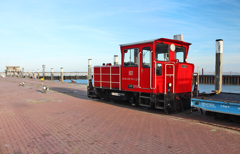 Hier sehen wir die Schöma-Lok »399 107-2« am Wangerooger Westanleger.
