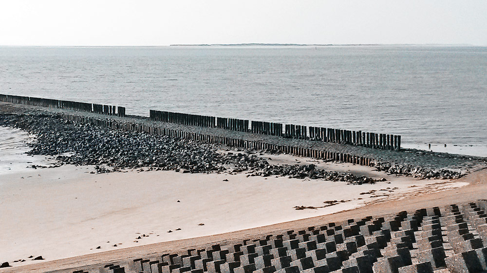 Die 660 Meter lange Buhne »V« ist die südwestlichste aller Wangerooger Seebuhnen – vom Steindamm, der den Westanleger schützt, mal abgesehen. Man kann die Buhne gut anhand der langen Pfähle erkennen, die sich auf ihrer Oberseite befinden.
