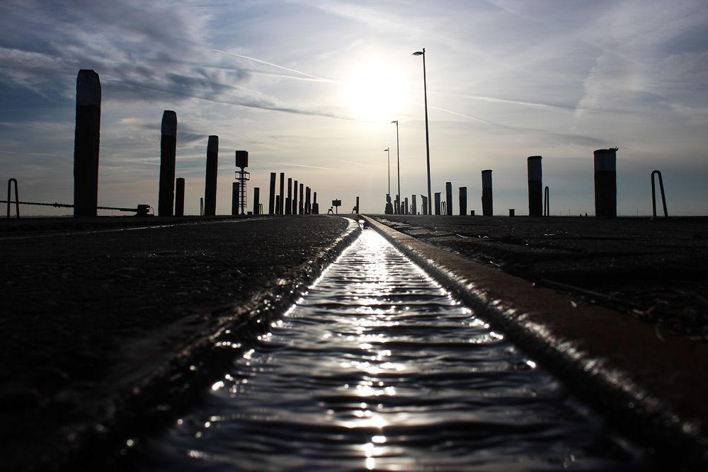 Nein, dies ist kein Bach oder Kanal, das »Gewässer« ist lediglich einige Zentimeter breit und befindet sich entlang einer Bahnschiene – die Perspektive täuscht ein wenig.