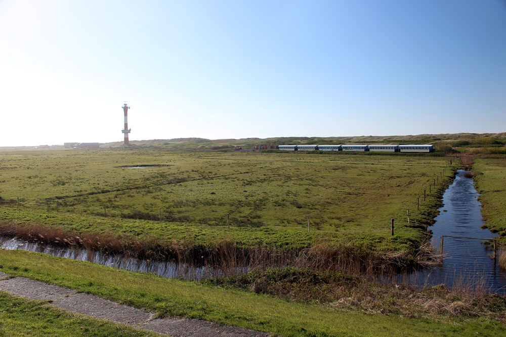 Nur noch wenige hundert Meter, dann hat die Inselbahn ihr Ziel erreicht, in Kürze wird der Neue Leuchtturm passiert werden.