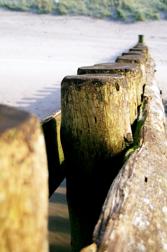 Salz, Wind und Wetter haben die Pfähle der Pfahlbuhne »L« deutlich gezeichnet.