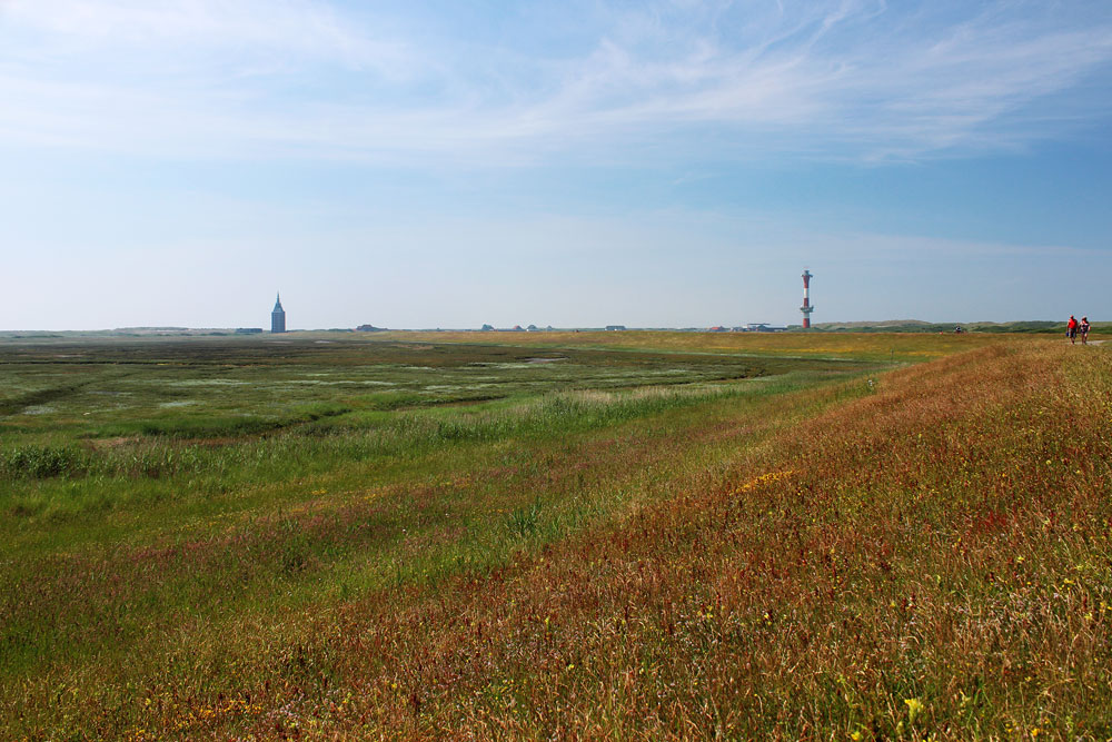 Auf dem Deich blühen die Gräser, der Frühsommer ist da! Links sehen Sie die Salzwiesen des Westaußengrodens.