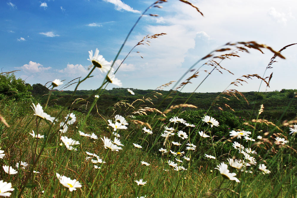 Auch entlang der Straße zum Westen wachsen an einigen Stellen hübsche Margeriten.