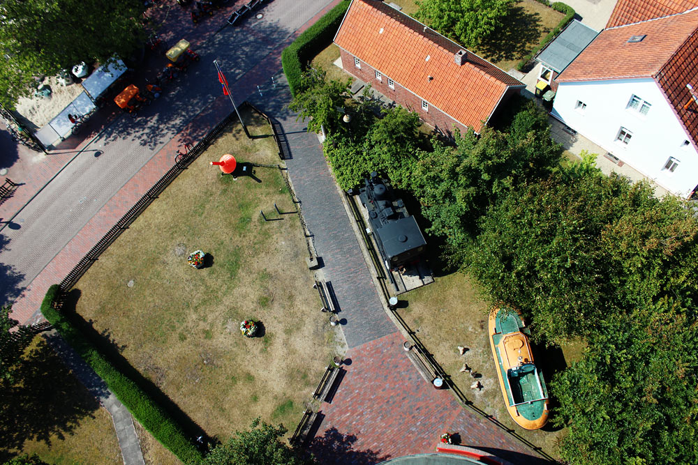 Die Dampflok »99 211« sieht von der Spitze des Alten Leuchtturms aus wie eine Spielzeuglok. Außerdem sind im Außenbereich des Heimatmuseums das ehemalige Rettungsboot »Gesina« und zahlreiche weitere Gegenstände ausgestellt.