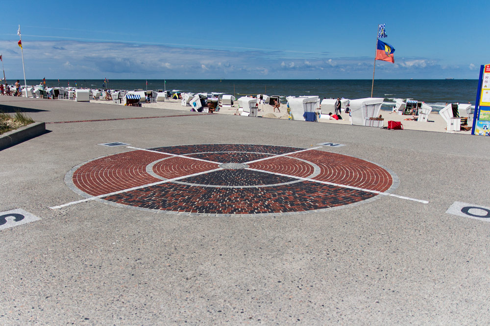 Auf der Strandmauer nördlich der »Westingstraße« befindet sich eine gemauerte Windrose, mit der man eine gute Vorstellung erhält, wo sich welche Himmelsrichtung befindet.