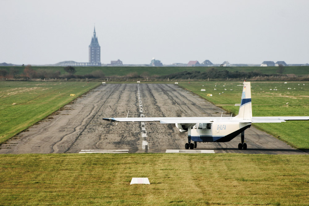 Die »Britten-Norman BN-2 Islander« der »LFH« ist startbereit, gleich werden die Motoren aufheulen und in ca. fünf Minuten wird das Flugzeug mit der Kennung »D-ILFA« bereits in Harlesiel landen.