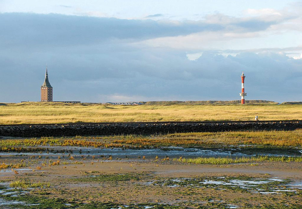 Vom Westanleger aus blickt die Bildautorhin hier auf den Westaußengroden. Im Hintergrund der Westturm (links) sowie der Neue Leuchtturm.