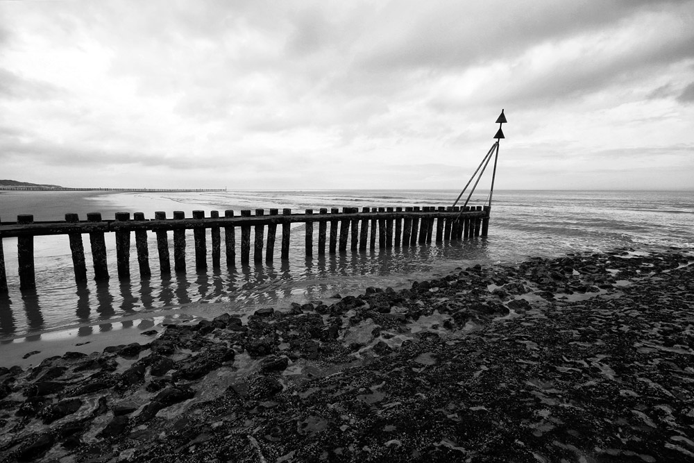 Am nördlichen Ende der Pfahlbuhne befindet sich ein Kardinalzeichen, das auf ein Hindernis (die Buhne) hinweist, das nördlich umfahren werden muß.