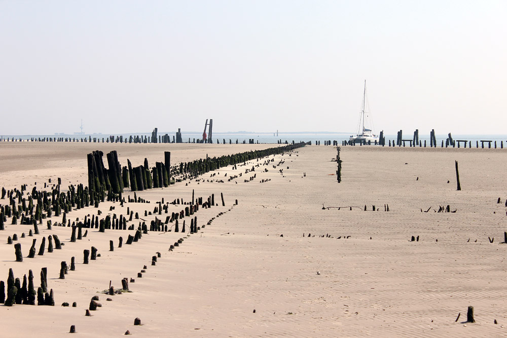 Unzählige Pfähle markieren am Wangerooger Ostende den Standort des ehemaligen Ostanlegers.
