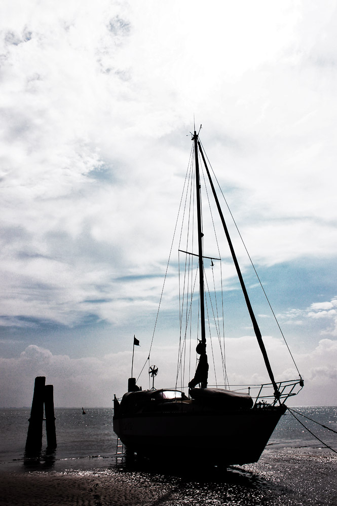 ‹ Am ehemaligen »Lloyd-Anleger« lassen sich in den Sommermonaten beinahe täglich Skipper mit ihren Booten trockenfallen. Bis dieses Segelboot wieder Wasser unterm Kiel haben wird, dürfte es noch ein wenig dauern…