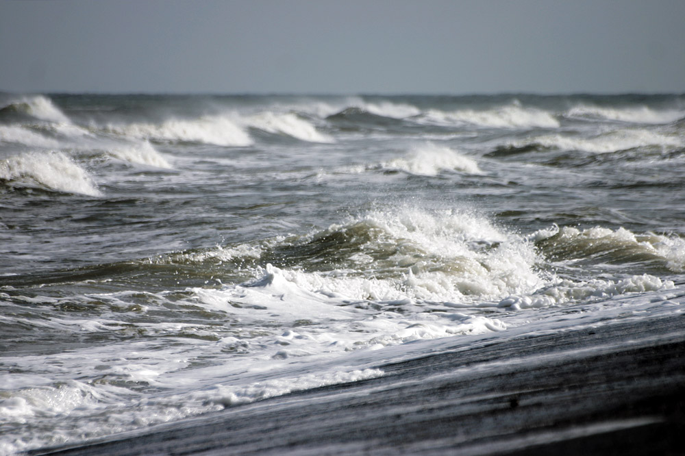 Wellen branden hier bei stürmischem Wind ans Nordwestlängswerk.