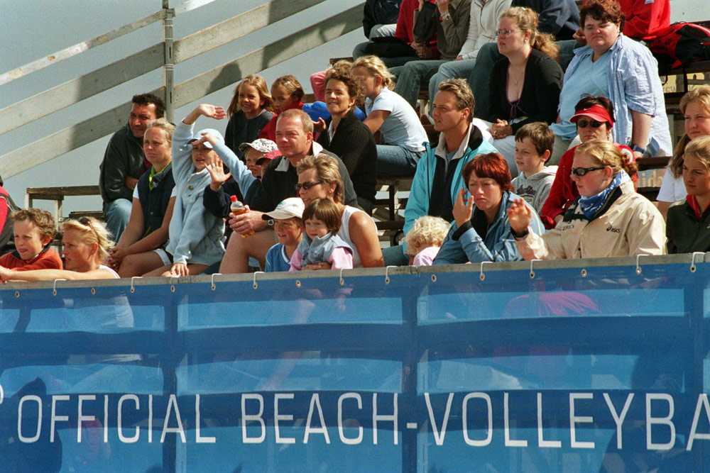 Im August 2005 fand der jährliche Beachvolleyball-Cup auf Wangerooge statt. Dieses Foto entstand am Center Court, die Reihen sind recht gut gefüllt.