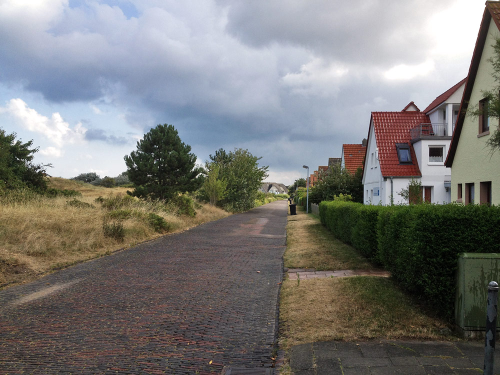 Erst kürzlich hat es geregnet, die Klinkersteine der »Siedlerstraße« sind noch feucht.