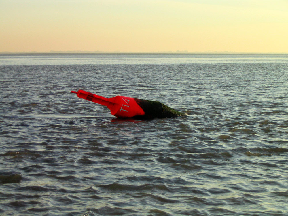 Ein Blick auf die »Telegraphenbalje«, die in der Nähe des Ostanlegers verläuft. Die Fahrrinne wird durch »T«-Tonnen und im flacheren Bereich durch Pricken markiert.