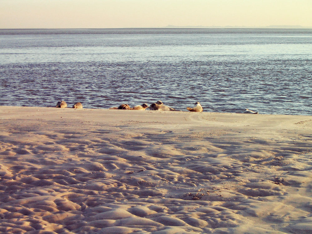 Am Ostende haben sich einige Seehunde versammelt, sie genießen die Herbstsonne.