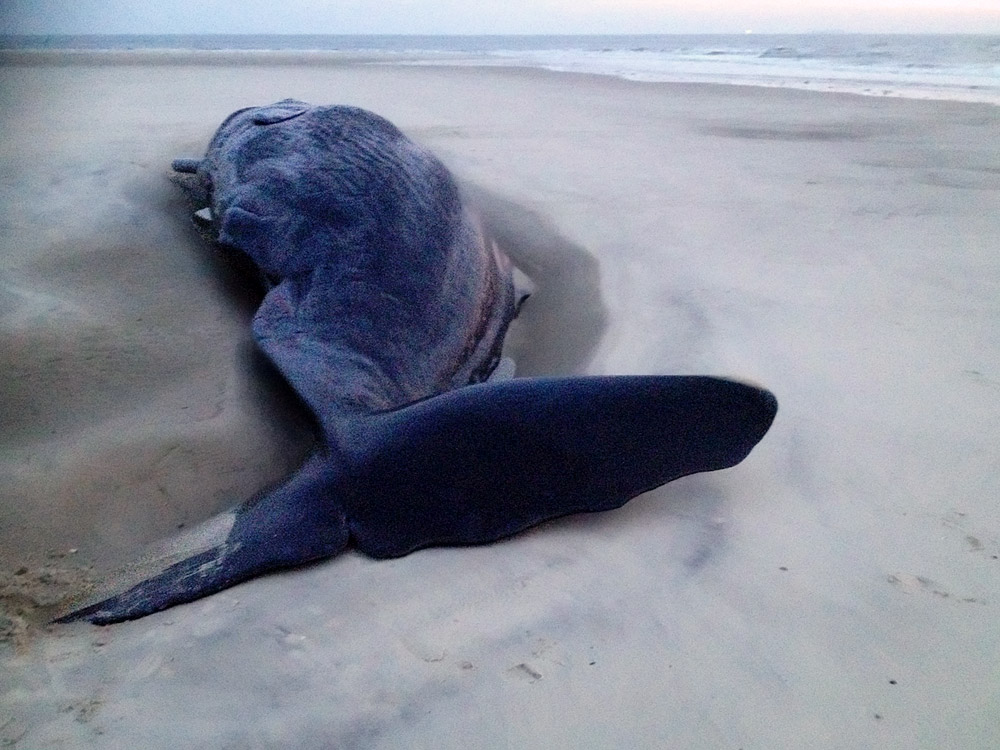 Hier die gewaltige Schwanzflosse von einem der beiden gestrandeten Pottwale.