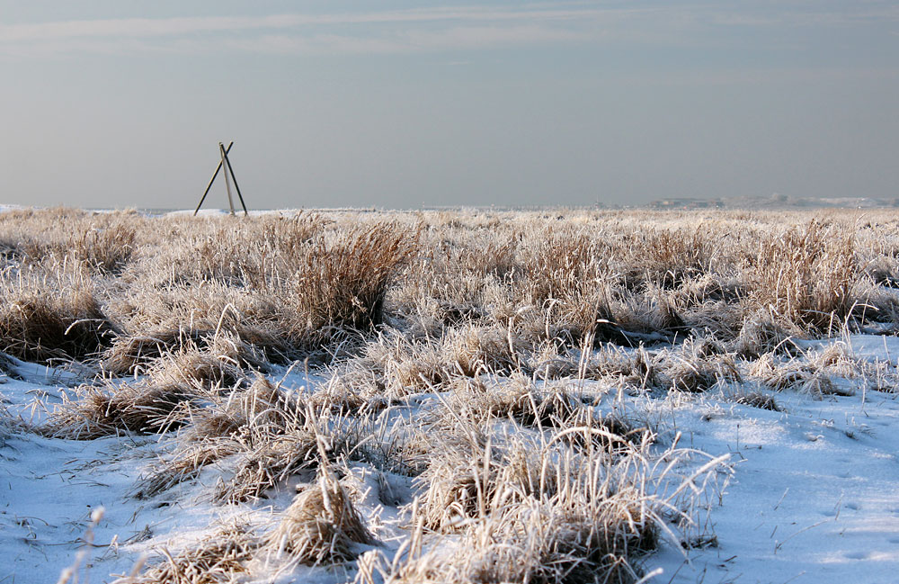 Schnee und Eis bedecken die Salzwiesen links und rechts des »Georgspads«.
