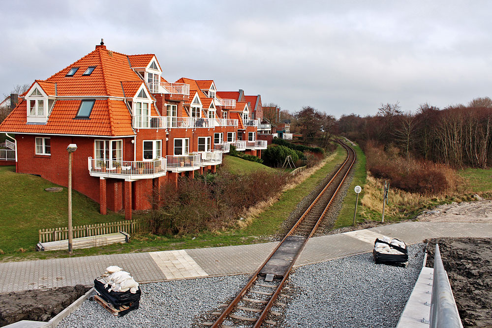 Die »Lagune am Wattenmeer« vom Deichschart aus gesehen. Die Höhe des neuen Deichscharts unterscheidet sich deutlich von der des alten, man bekommt ja beinahe Höhenangst…