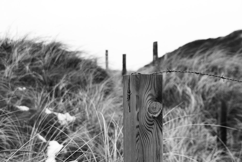 Da die Dünenschutzgebiete im Hinblick auf den Küstenschutz nicht betreten werden dürfen (Trampelpfade schwächen die Dünen), sind sie eingezäunt. Heutzutage geht man aber dazu über, nur noch Draht ohne Stacheln zu nutzen.