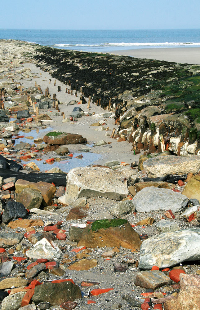 ‹ Westlich der Buhne »G« liegen unzählige alte Klinkersteine und andere Trümmer, teils aus dem alten Westdorf, teils von der ehemaligen Strandmauer.