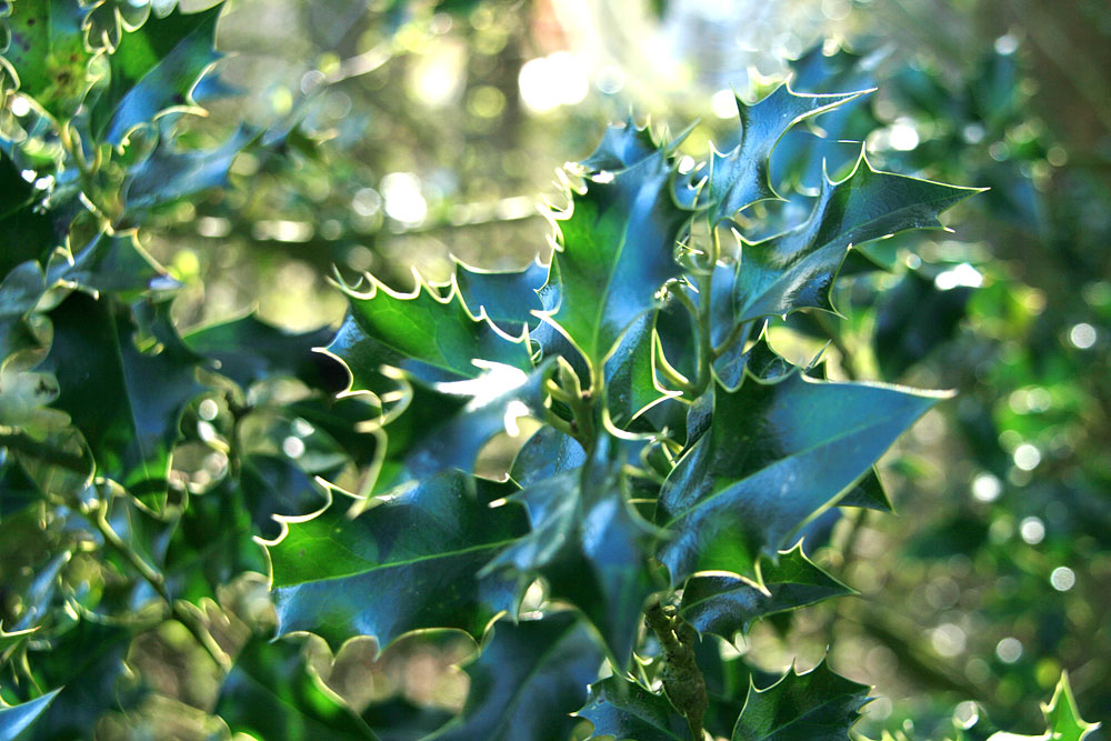 Am Rande des Rosengartens steht ein »Ilex«, die »Europäische Stechpalme«. Warum die Pflanze so heißt wie sie heißt, ist hier unschwer zu erkennen, die Blätter sind doch teils arg stachelig.