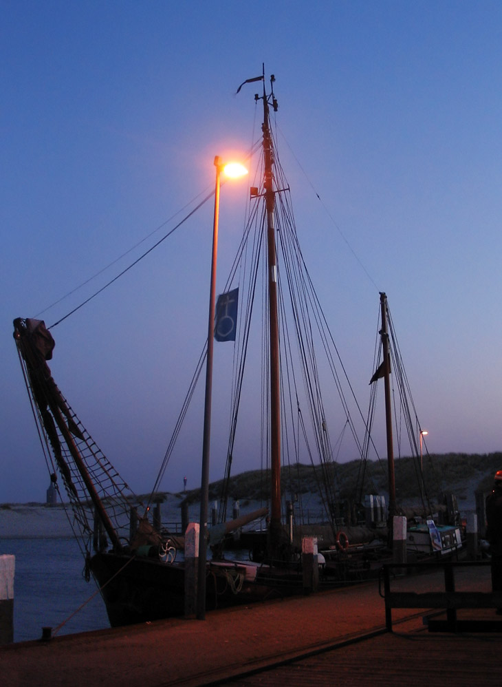 ‹ In aller Herrgottsfrühe entstand dieses Foto am Westanleger. Gleich wird die Personenfähre vom Anleger in Richtung Festland ablegen, zurück bleibt unter anderem ein hübscher zweimastiger Segler.