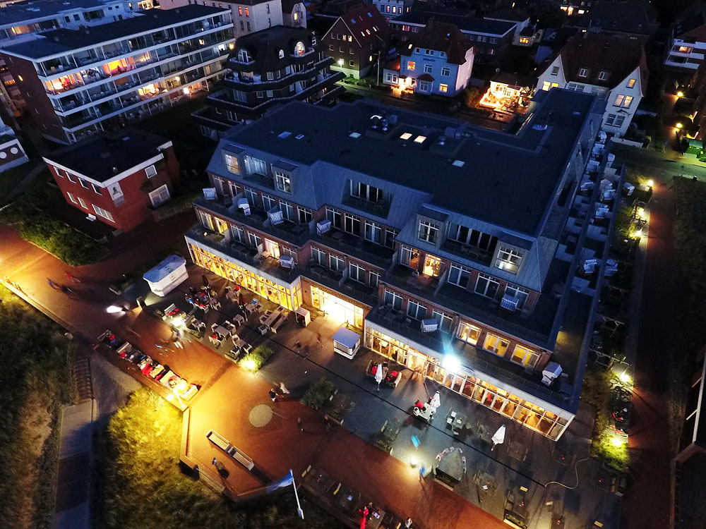 Direkt südlich der Strandpromenade beginnt bereits die Bebauung des Inseldorfes, hier mit dem Aparthotel »Anna Düne«, dem Haus »Poseidon«, dem Haus »Strandblick« und einigen weiteren Gebäuden an der »Peterstraße«. Der Durchgang rechts wurde neu geschaffen und nennt sich »Herrenpfad«.