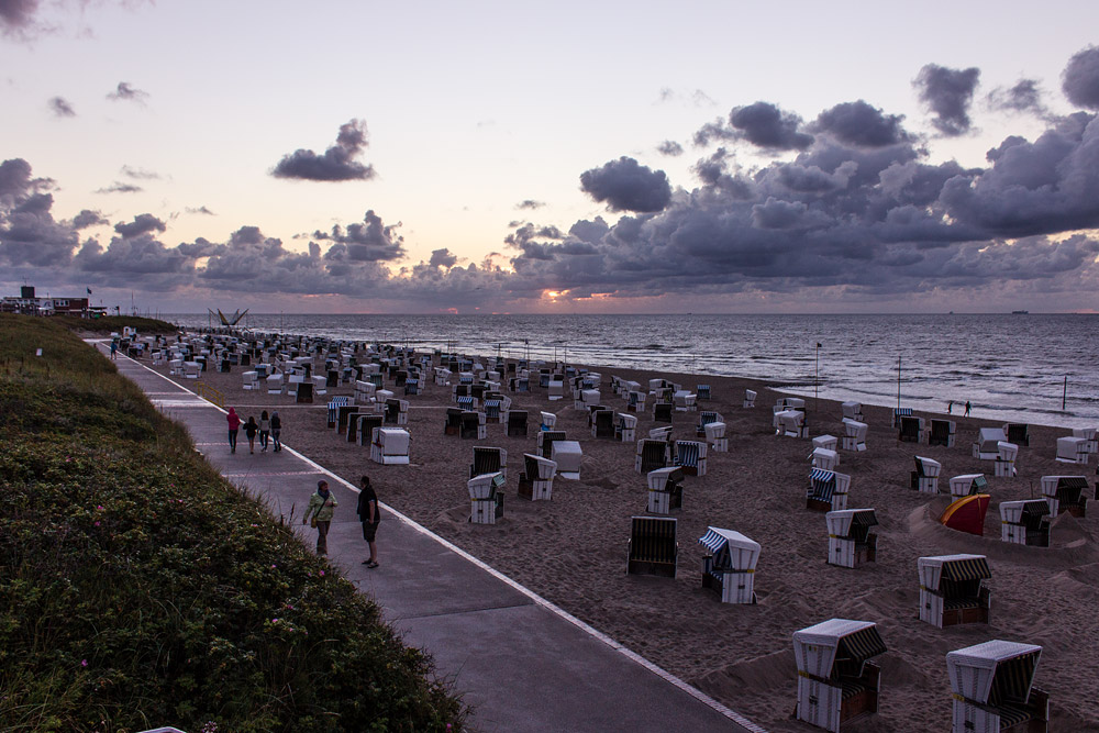 Blick auf das Westfeld zur Abenddämmerung, bald wird die Sonne im Meer versinken.