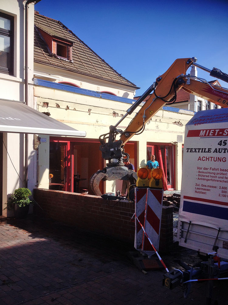 ‹ Noch steht das meiste des ehemaligen Verkaufsraums der Schlachterei, doch schon zwei Tage später wird dieser Teil des Gebäudes vollständig abgerissen sein.