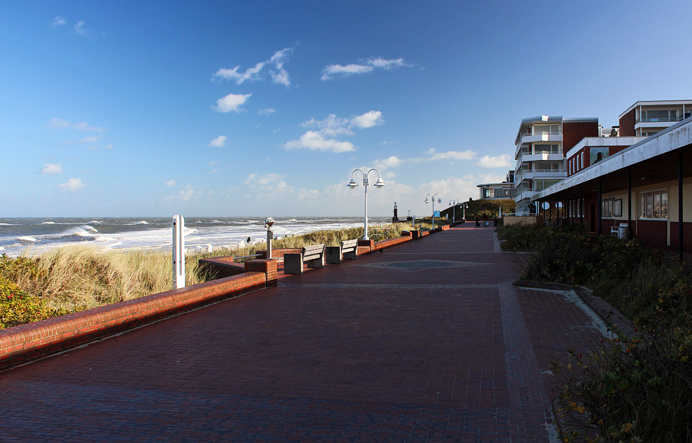 Der Wandelgang zwischen der Strandpromenade und dem Cobigolf-Platz (rechts) bestand bis Ende 2013, danach wurde an dieser Stelle ein großes Aparthotel erbaut.