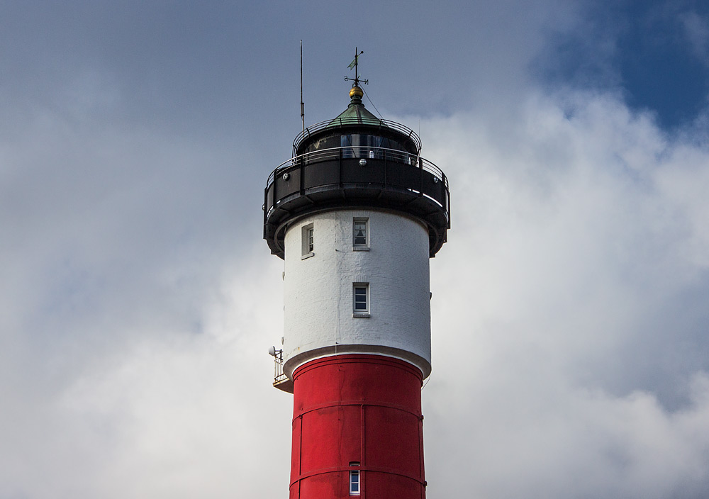Hier die Spitze des ältesten Gebäudes der Insel, des Alten Leuchtturms von 1856. Die Turmspitze ist allerdings deutlich jünger, nämlich aus den 1920er Jahren. Nur der rot gestrichene Turmschaft ist noch »original« und über 150 Jahre alt.