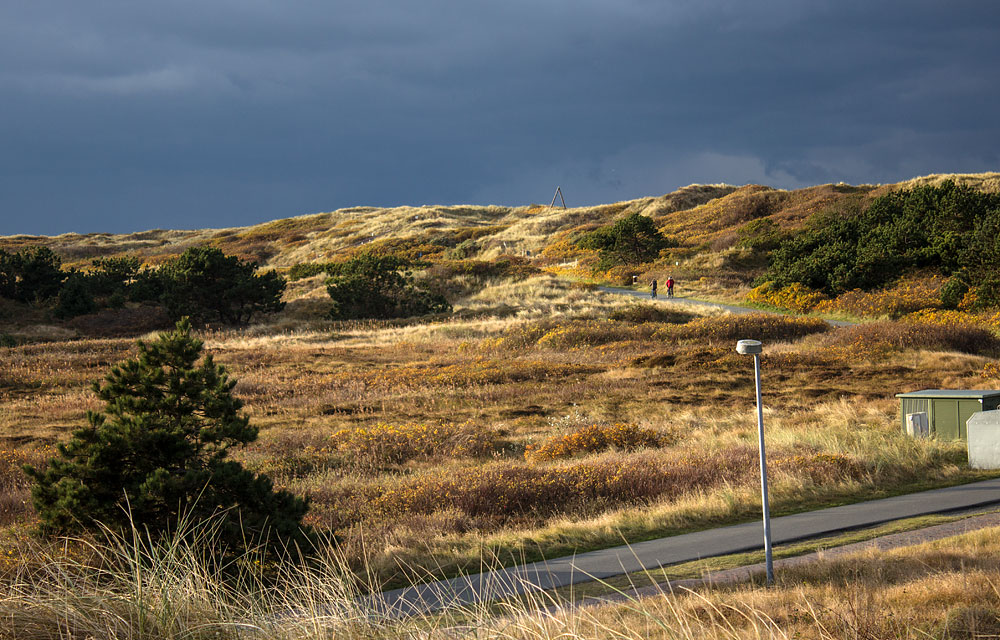 Einen tollen Kontrast zum dunklen Himmel bilden hier die von der Sonne angestrahlten Dünen. In der Nähe der »Saline« wird die »Straße zum Westen« in der Nacht außerdem sogar mit Straßenlaternen beleuchtet.