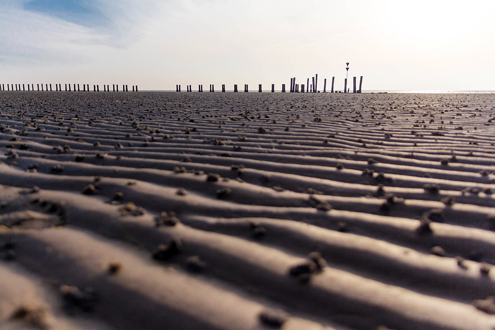 Von der ehemaligen Ostbake ist nicht viel mehr übrig geblieben als ein paar Pfahlreste. Heute markiert lediglich ein Kardinalzeichen den früheren Standort der Bake.