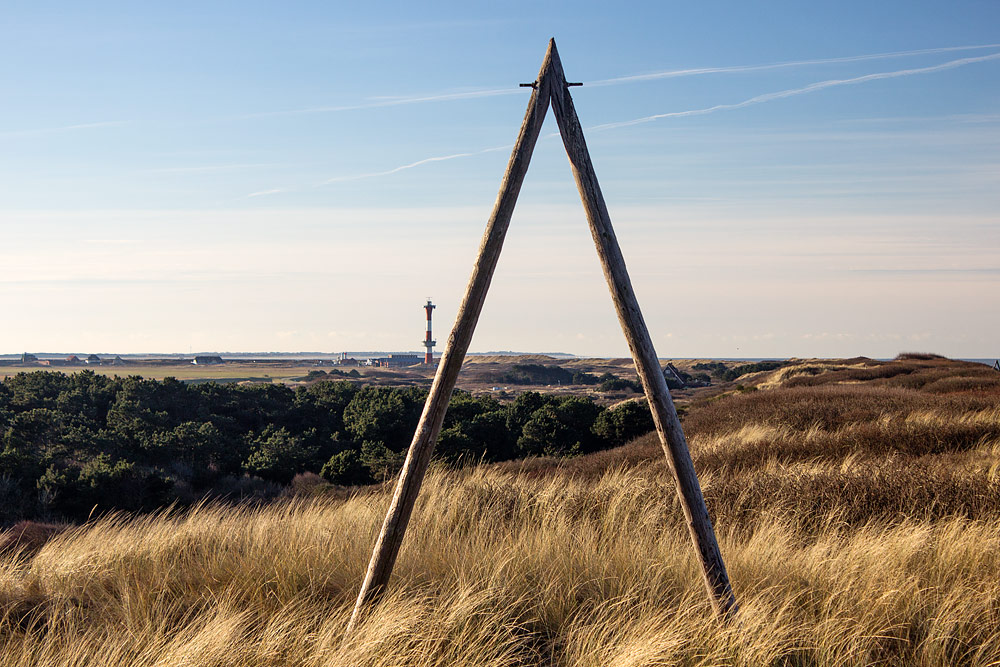 Wir befinden uns hier an der Dünenüberwegung »Bielefelder Heim«, direkt vor uns befindet sich der »A-Mast«, durch den man die Überwegung schon aus einiger Entfernung erkennen kann.