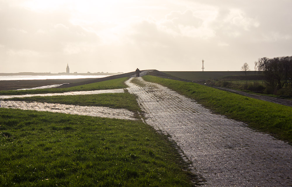 Richtig alt wirkt der noch nicht erhöhte Teil des Dorfgrodendeichs hier. Dieses Teilstück wird im Laufe des Sommers 2017 gesperrt und erhöht werden, im Hintergrund ist er bereits deutlich höher als bislang.