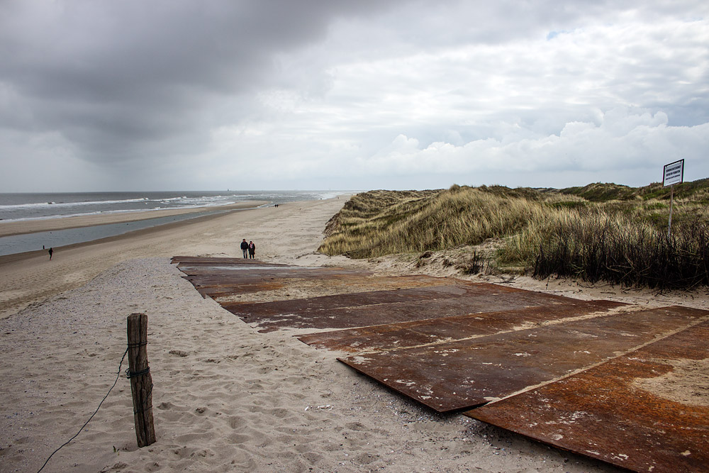 Die Dünenüberwegung »Neudeich« wurde mit Stahlplatten ausgestattet, damit dort auch schwere Baufahrzeuge die Dünen überqueren können, ohne die Überwegung zu zerstören.